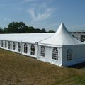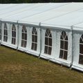 Deze professionele tent met een aluminium frame heeft een vrije overspanning waardoor er geen staanders en/of obstakels in de tent staan. Hierdoor kunt u de ruimte optimaal benutten. Onze tenten zijn voorzien van het witte opaque zeildoek. Het bijkomende voordeel van dit zeil is dat de lichteffecten beter tot uiting komen. Wanneer er in de tent presentaties gehouden worden is het beeld vele malen beter te zien, omdat de gehele tent verduisterd is.