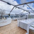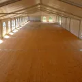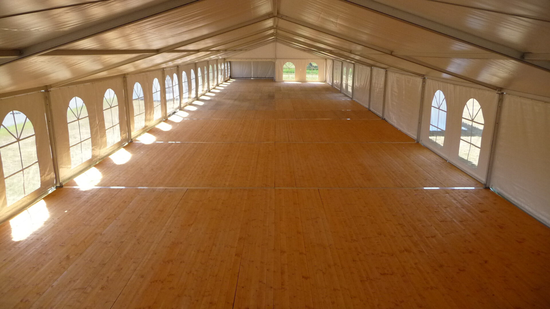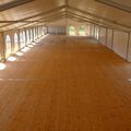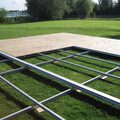 Deze alu-frame tent wordt gebouwd op een systeemvloer, deze vloer bestaat uit stalen elementen en vloerdelen waardoor oneffenheden in de ondergrond kunnen worden verholpen (zie onderstaand een film hoe wij een alu frame tent plaatsen met een systeemvloer).