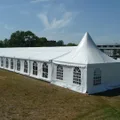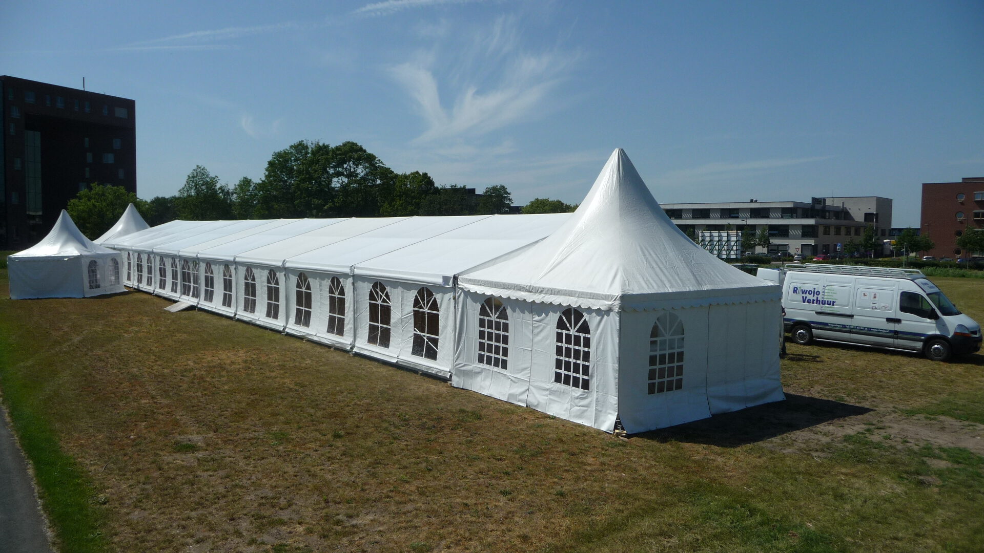 Deze professionele tent met een aluminium frame heeft een vrije overspanning waardoor er geen staanders en/of obstakels in de tent staan. Hierdoor kunt u de ruimte optimaal benutten. Onze tenten zijn voorzien van het witte opaque zeildoek. Het bijkomende voordeel van dit zeil is dat de lichteffecten beter tot uiting komen. Wanneer er in de tent presentaties gehouden worden is het beeld vele malen beter te zien, omdat de gehele tent verduisterd is.