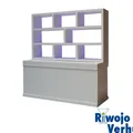 Deze mooie achterkast incl. buffet kan goed gebruikt worden achter een bar, balie etc.. Spullen kunnen op een stijlvolle manier gepresenteerd worden in deze kast.