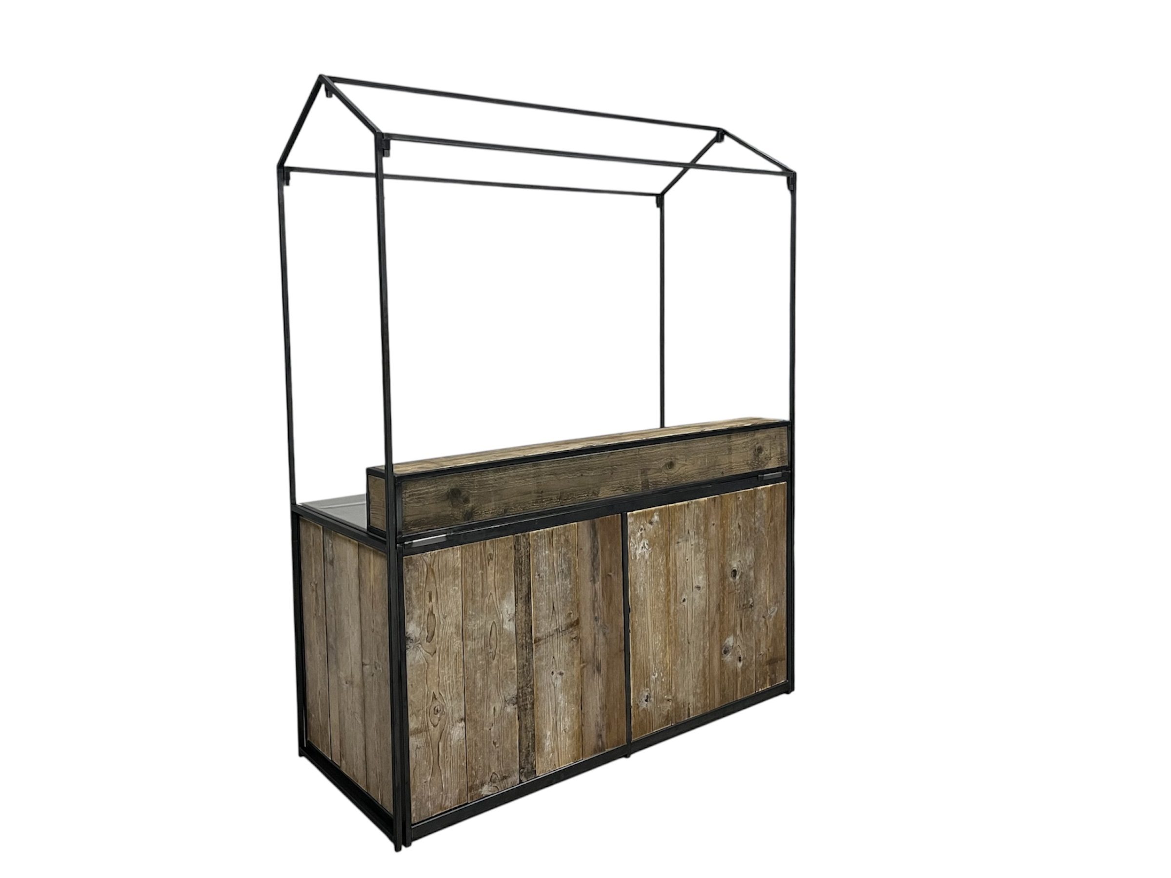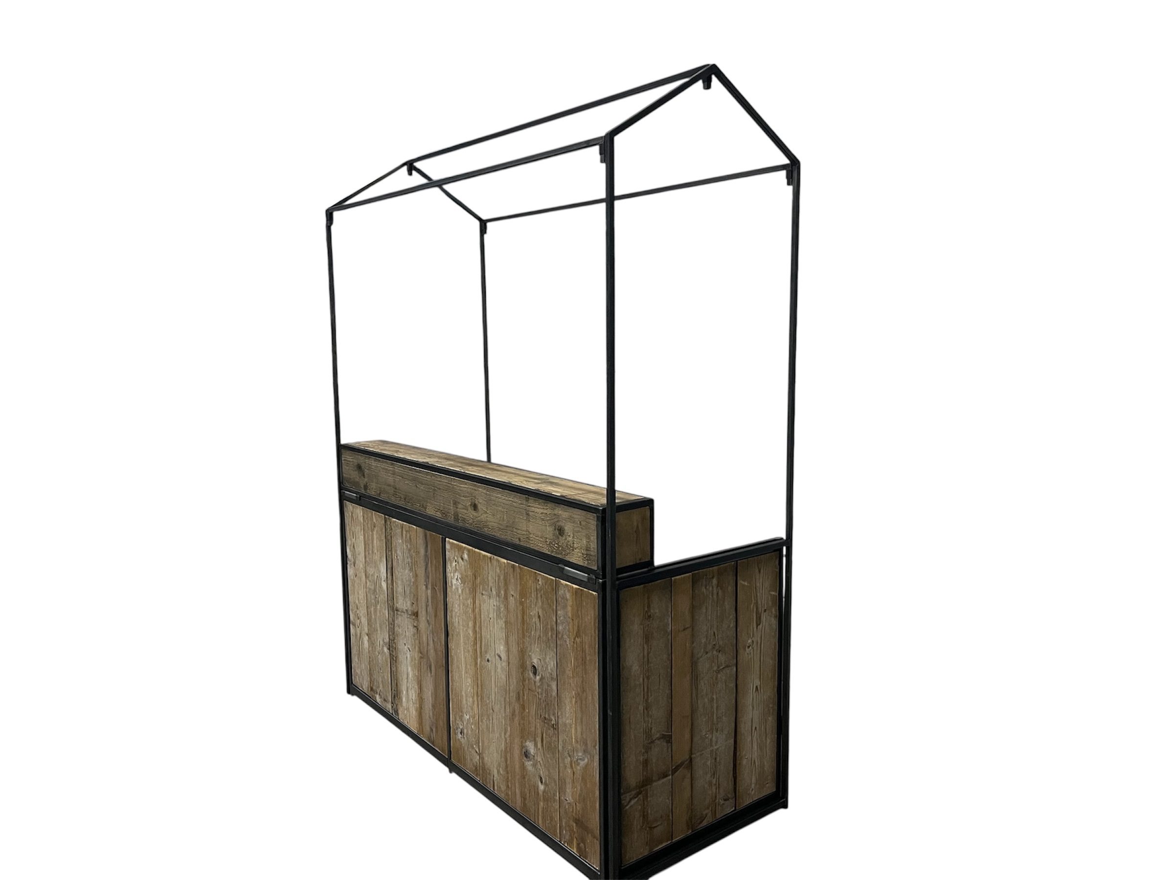 Deze stijlvolle buffetbar brengt direct sfeer in iedere ruimte. De combinatie van steigerhout en zwart staal geeft een warme, industriële uitstraling. Perfect voor bruiloften, bedrijfsfeesten, borrels en evenementen.