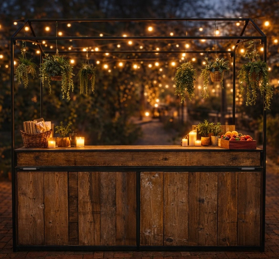 Gebruik de bar als drankbuffet, presentatieplek of ontvangstpunt – een praktische én sfeervolle toevoeging aan elk feest.