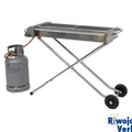 de brander ontwikkelt in de winddichte bak een hoge temperatuur en derhalve is deze barbecue geschikt voor flinke productie.