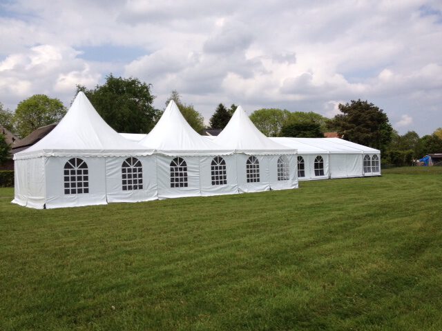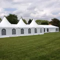 De pagode tent is een sfeervolle tent met een luxe uitstraling door het hoge puntdak. De 4 x4 meter pagodetent kunnen wij eindeloos koppelen tot de door u gewenste afmeting. Deze tenten zijn voorzien van opaque zeil (dit is een niet licht doorlatend zeildoek). Standaard worden 2 zijdes voorzien van raam zeilen en 2 zijdes van dichte zeilen. Op aanvraag is dit geheel naar wens aan te passen.