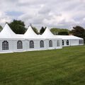 De pagode tent incl. vloer is een sfeervolle tent met een luxe uitstraling door het hoge puntdak. De 5 x 5 meter pagodetent kunnen wij eindeloos koppelen tot de door u gewenste afmeting. Deze tenten zijn voorzien van opaque zeil (dit is een niet licht doorlatend zeildoek). Standaard worden 2 zijdes voorzien van raam zeilen en 2 zijdes van dichte zeilen.