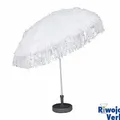 Niet bestand tegen regen, bij veel wind parasol inklappen om schade te voorkomen.