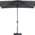 Niet bestand tegen regen, bij veel wind parasol inklappen om schade te voorkomen.