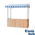 Party kraam blauw/ wit incl. houten voorzetscherm.