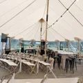 Onze sailcloth tenten worden standaard geleverd met decoratieve vlagen en transparante zijzeilen voor een open, licht gevoel.