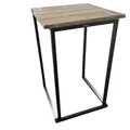 Moderne, strakke zwarte statafel Kubo, maar door het steigerhouten blad ook weer stoer.