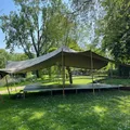 De stretchtent kan uitgebreid worden met een vlondervloer (Let op! Deze vlondervloer wordt direct op de ondergrond geplaatst. Het maximale hoogteverschil van de ondergrond mag maximaal 10 cm. per 2 meter zijn. Hout is een natuurproduct, het kan zijn dat er wat kiervorming tussen de delen optreedt (max 1 cm.)). of een systeemvloer (deze vloer bestaat uit stalen elementen en vloerdelen waardoor oneffenheden in de ondergrond kunnen worden verholpen).