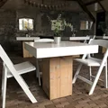Tafel luxe wit met steigerhouten blad 80x80 cm.